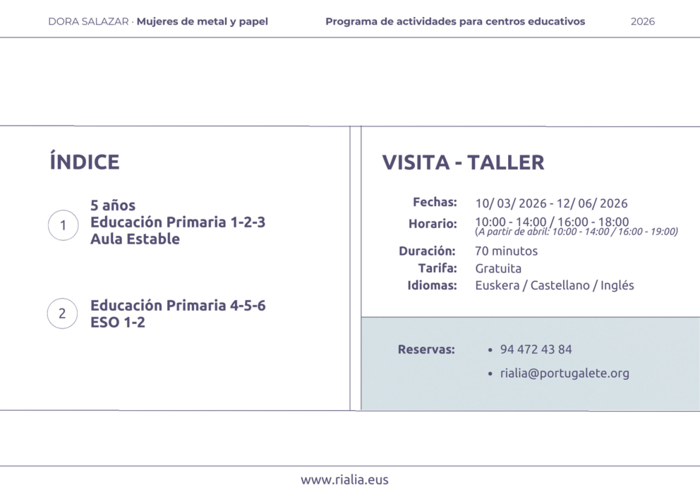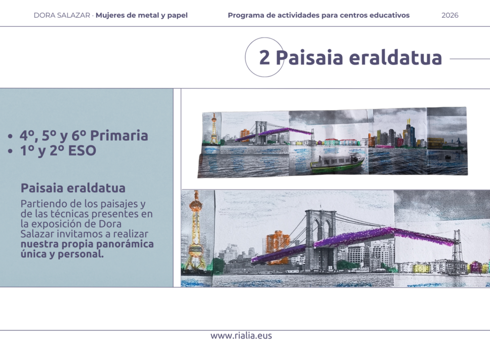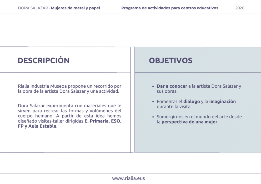 Rialia Industria Museoa propone un conjunto de actividades educativas basadas en la exposición “DORA SALAZAR. Mujeres de metal y papel”.